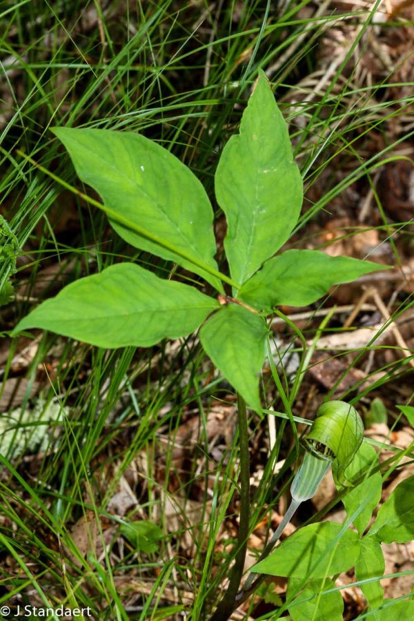 It depends on what you mean by leaves. Generally they have 1 or 2 leaves divided into 3 leaflets. But some plants get carried away and have extra leaflets. See: https://wcbotanicalclub.org/five-leaved-jack-in-the-pulpit-arisaema-triphyllum/