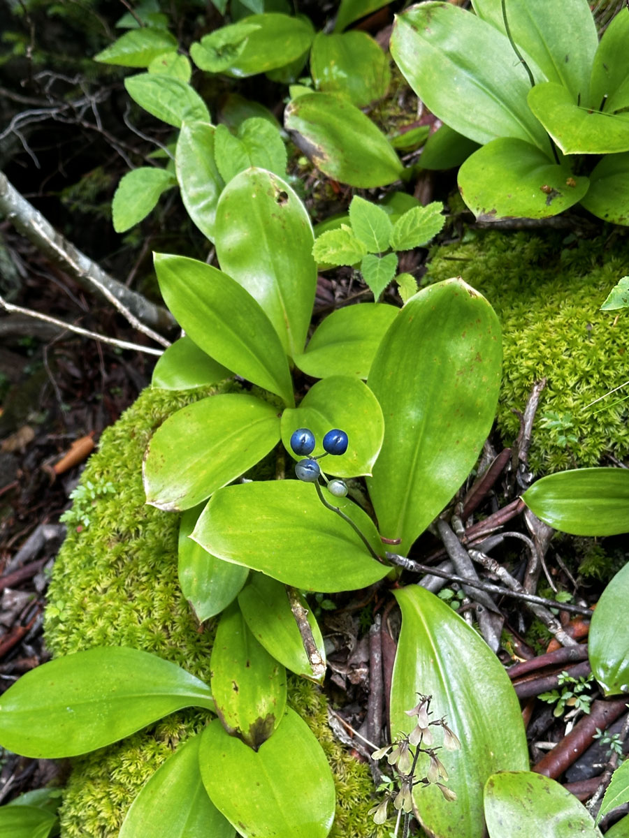 Bluebead Lily (Clintonia borealis) & Appalachian or Kidney-leaved Twayblade (Neottia smallii)