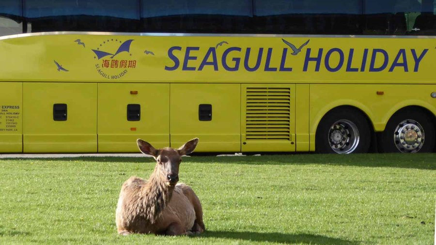Very Pregnant Elk Waiting for a Bus at Mammoth Hot Springs