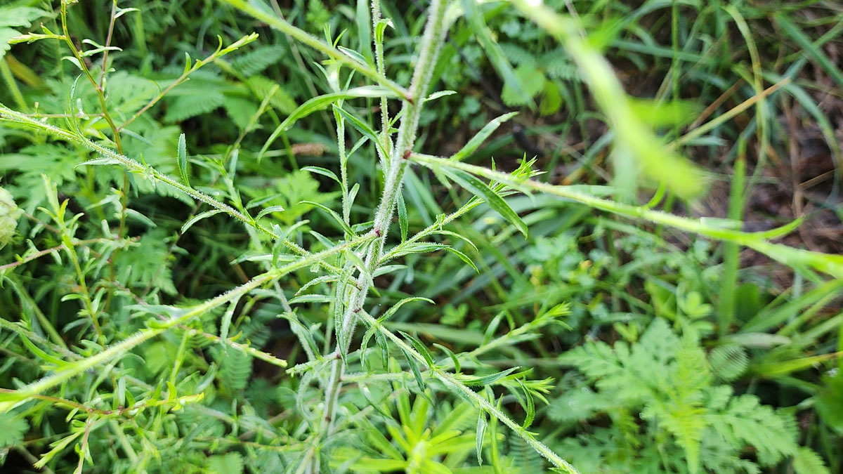 Hairy White Heath Aster (Symphyotrichum pilosum) [Asteraceae] Leaves & Stem