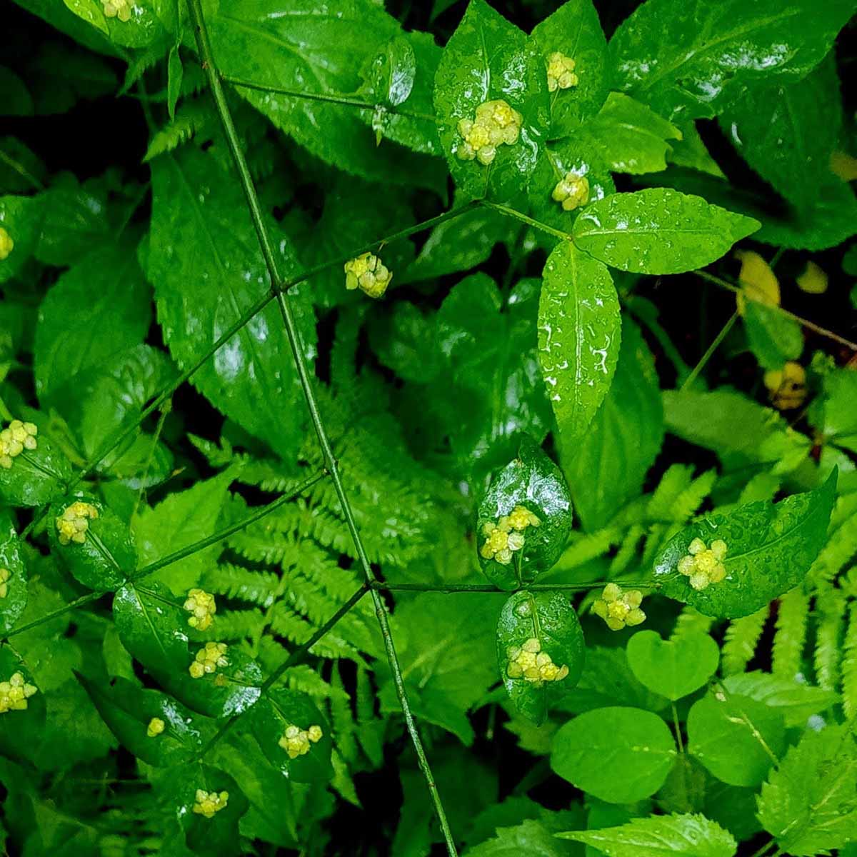Hearts-a-bustin’; Strawberry Bush (Euonymus americanus)) Blooms