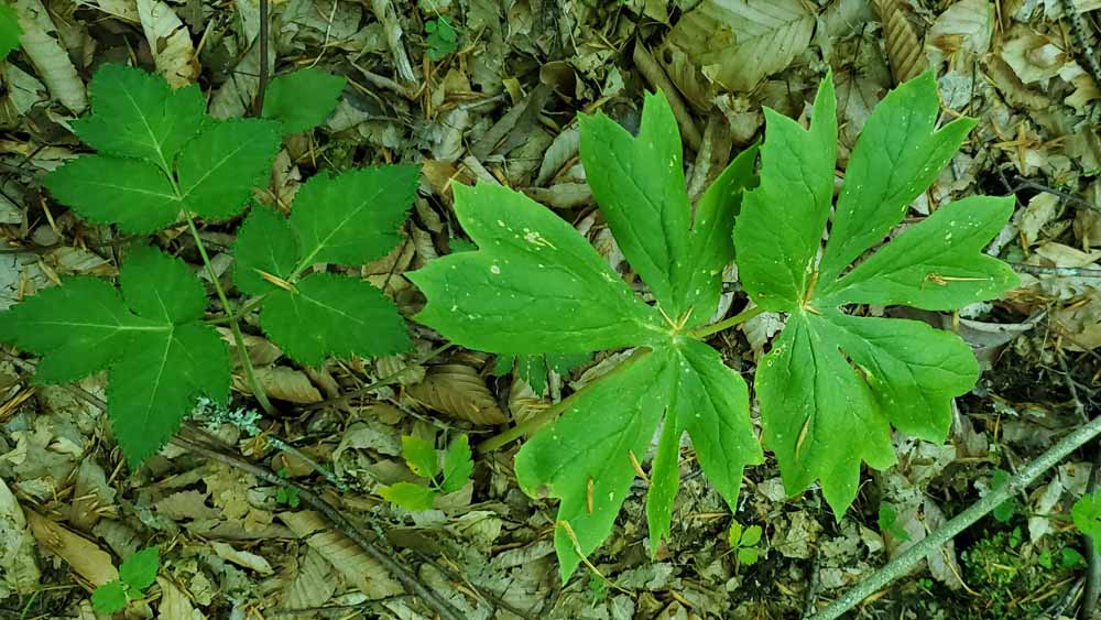Filmy Angelica (Angelica triquinata) & May Apple; Mandrake (Podophyllum peltatum)