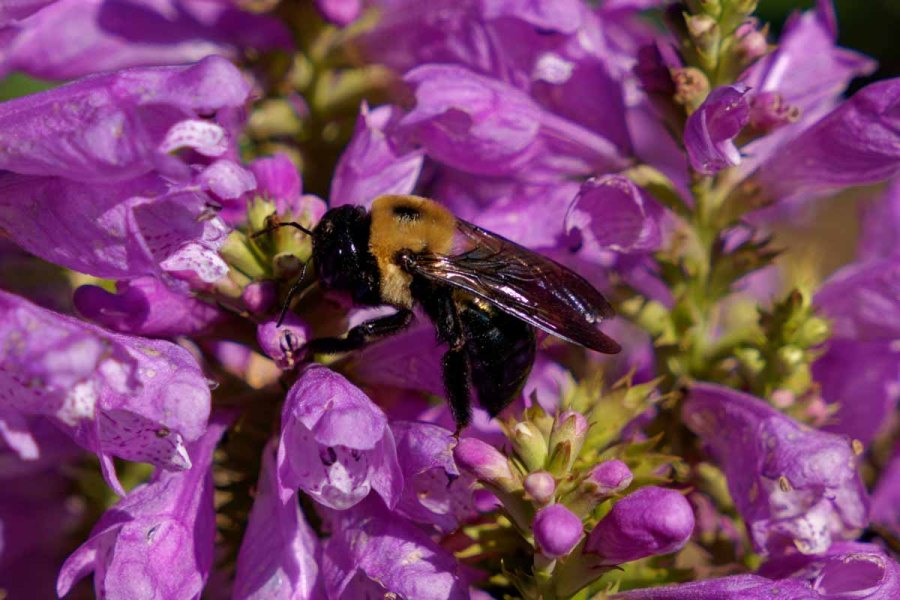 Obedient Plant; False Dragonhead (Physostegia virginiana) [Lamiaceae] with bumblebee