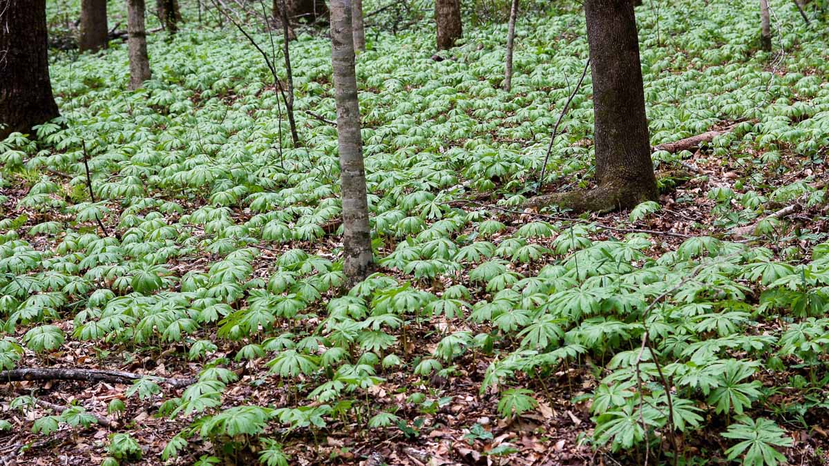 Acres of May Apple; Mandrake (Podophyllum peltatum) [Berberidaceae]