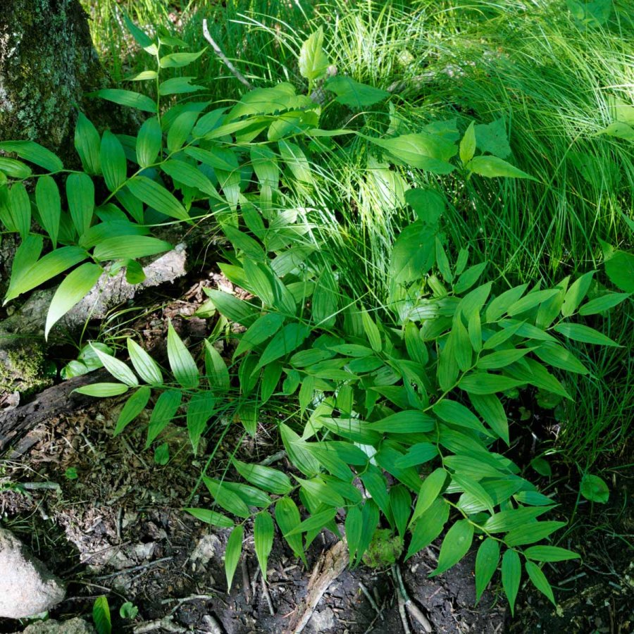 Rose Twisted Stalk; Rose Mandarin (Streptopus lanceolatus v. roseus) foliage