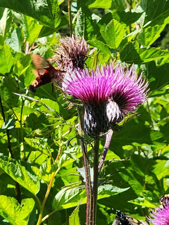 Swamp Thistle (Cirsium muticum) with Hummingbird Clearwing Moth (Hemaris thysbe)
