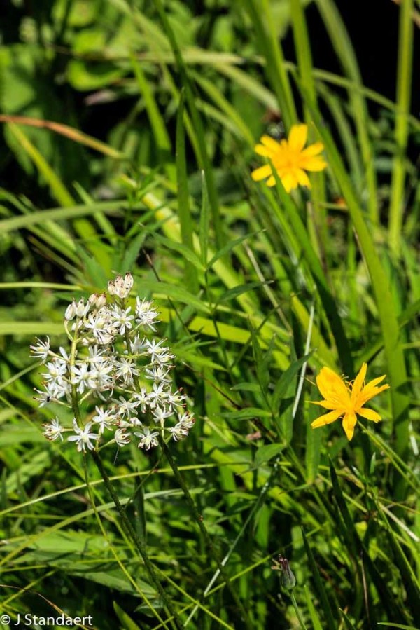 Sticky Asphodel (Triantha glutinosa) and Mountain Cynthia (Krigia montana)