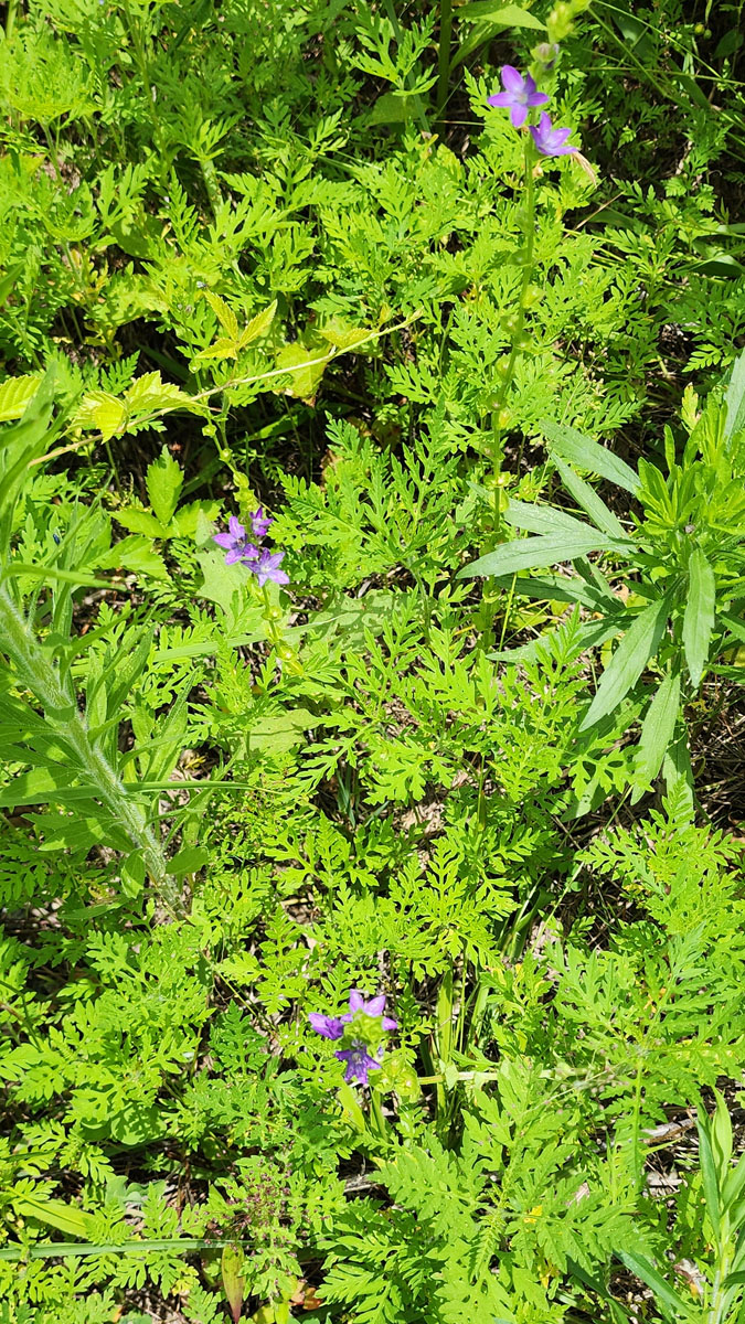 Venus’ Looking Glass (Triodanis perfoliata) & a Bunch of Common Ragweed (Ambrosia artemisiifolia)