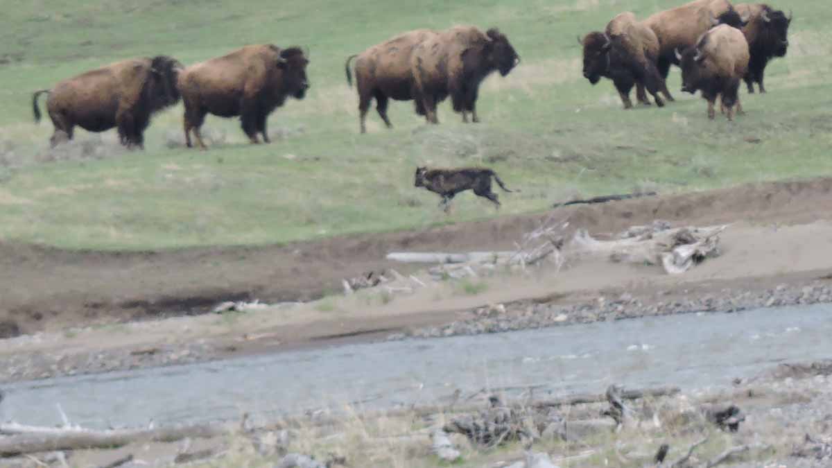 Wolf and Bison in Lamar Valley